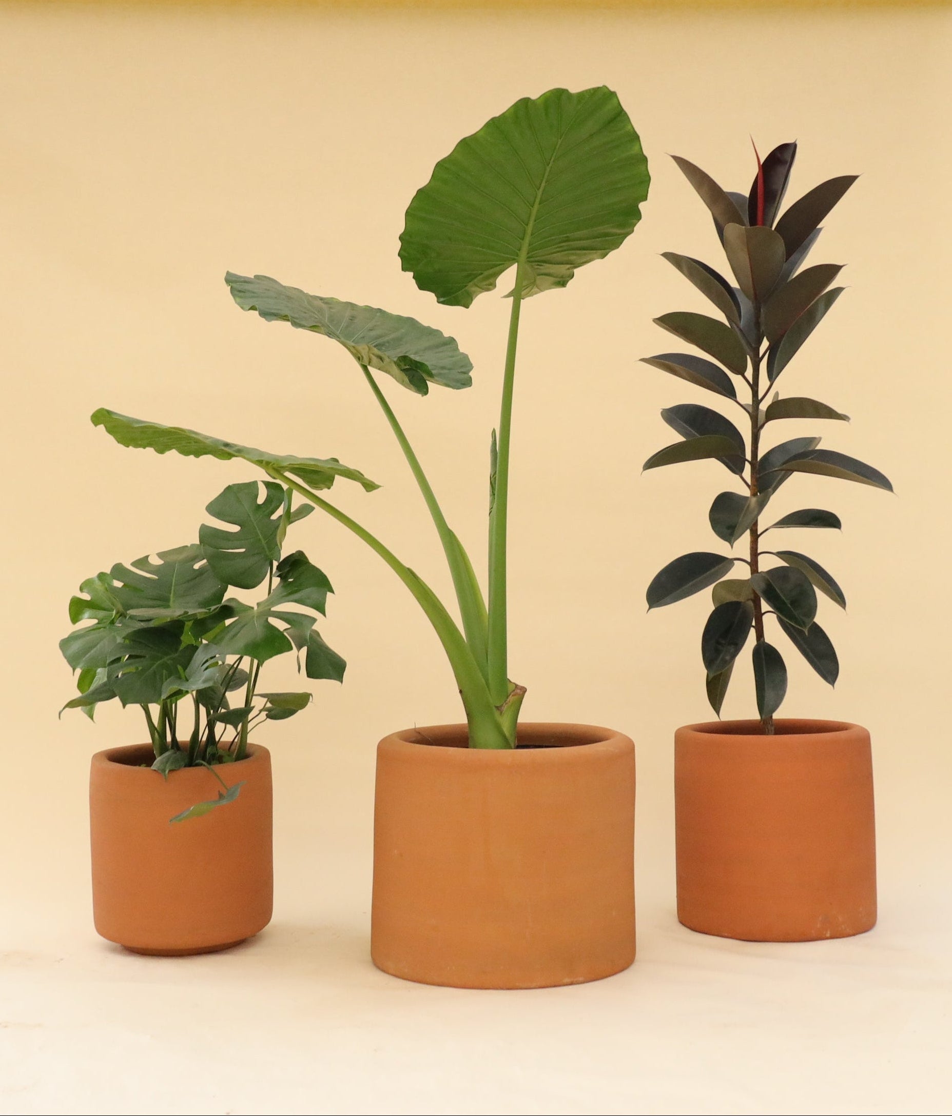Las macetas de barro son clásicas y funcionales: su porosidad permite que el sustrato respire y ayuda a evitar el exceso de humedad. Funcionan en interior y exterior.